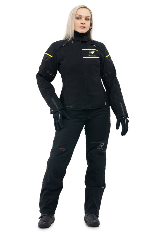 For: Woman Color: Black , Fluo Yellow Material: Textile Features: Armacor® , CORDURA® , GORE-TEX® PRO , Kevlar , Laminated , Waterproof Intended Use: Touring Season: Four Season CE Certified: A - Delivery and freight