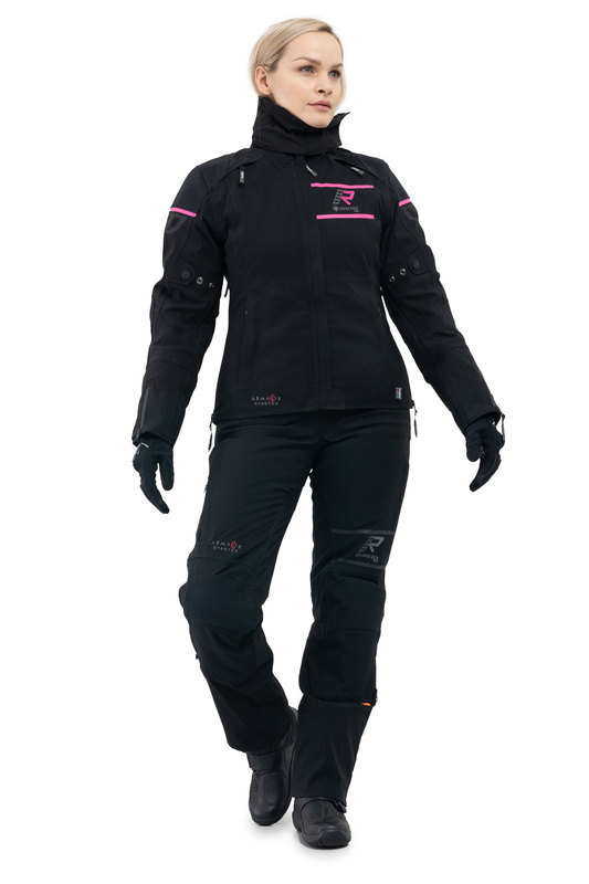For: Woman Color: Black , Pink Material: Textile Features: Armacor® , CORDURA® , GORE-TEX® PRO , Kevlar , Laminated , Waterproof Intended Use: Touring Season: Four Season CE Certified: A - Delivery and freight